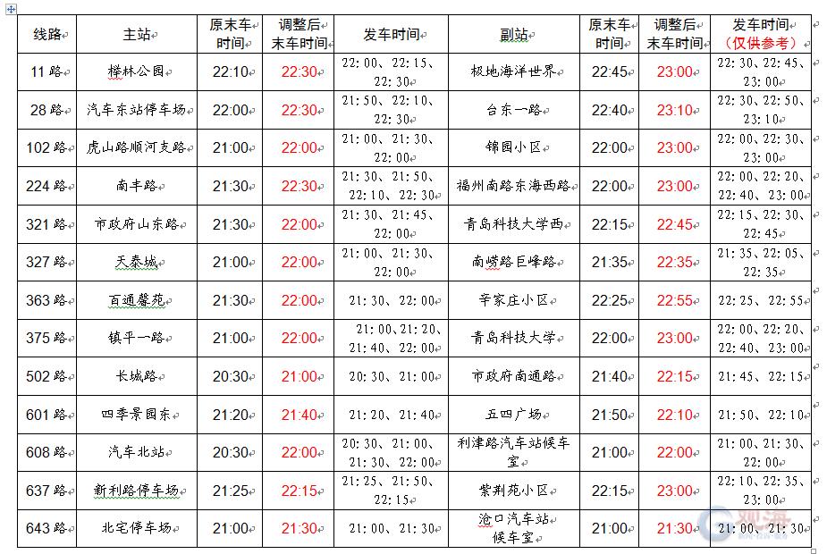 二、此外,下月起,青岛13条公交线路班车时间进行季节性延时。