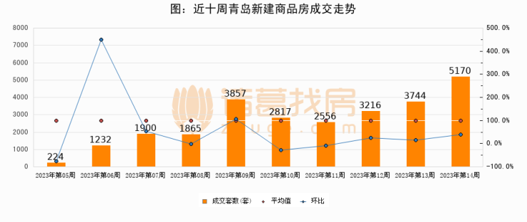 【青岛成交周报】第14周新房成交5170套,二手房1661套,涨价房源1067套