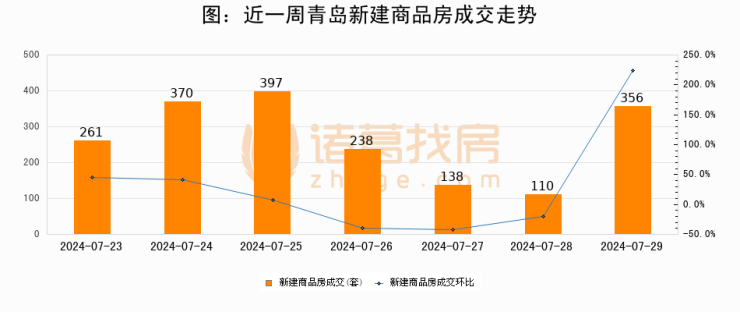 【青岛成交日报】07月29日新房成交356套、二手房267套;涨价房源75套
