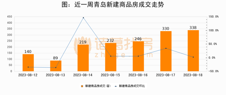 【青岛成交日报】08月18日新房成交338套、二手房185套;涨价房源190套