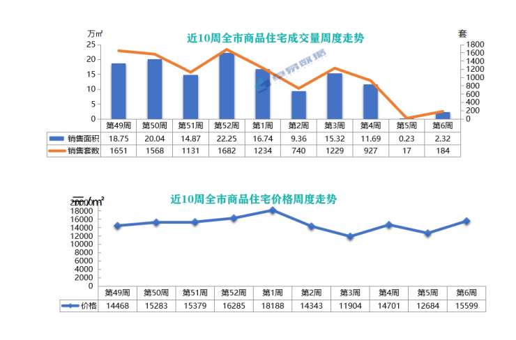 价格方面,上周青岛新建商品住宅均价为15599元/㎡。