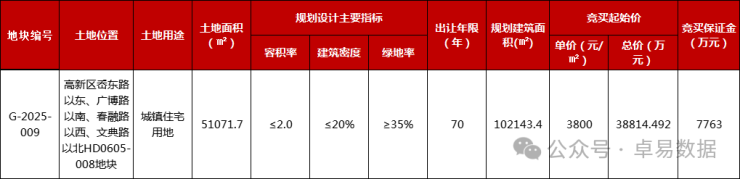 12月11日,高新区1宗商改住用地上市,容积率2.0,总建面10.2万㎡,起拍楼板价3800元/㎡,起拍总价3.88亿元。