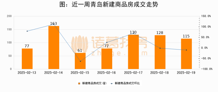 【青岛成交日报】02月19日新房成交115套、二手房223套;