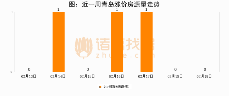 根据诸葛找房数据显示,青岛24小时涨价房源量为0套,较02月18日持平。