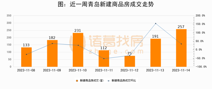 【青岛成交日报】11月14日新房成交257套、二手房209套;涨价房源52套
