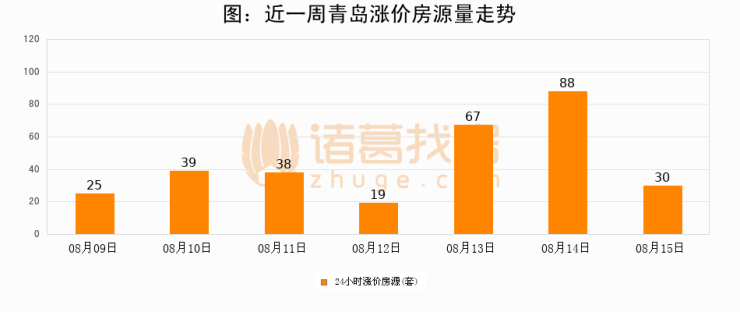 根据诸葛找房数据显示,青岛24小时涨价房源量为30套,较08月14日减少58套,环比下降65.9%。与此同时,涨价房源占比小幅回落,对于购房者来说是一个入市窗口期,购房者可抓住时机入市。