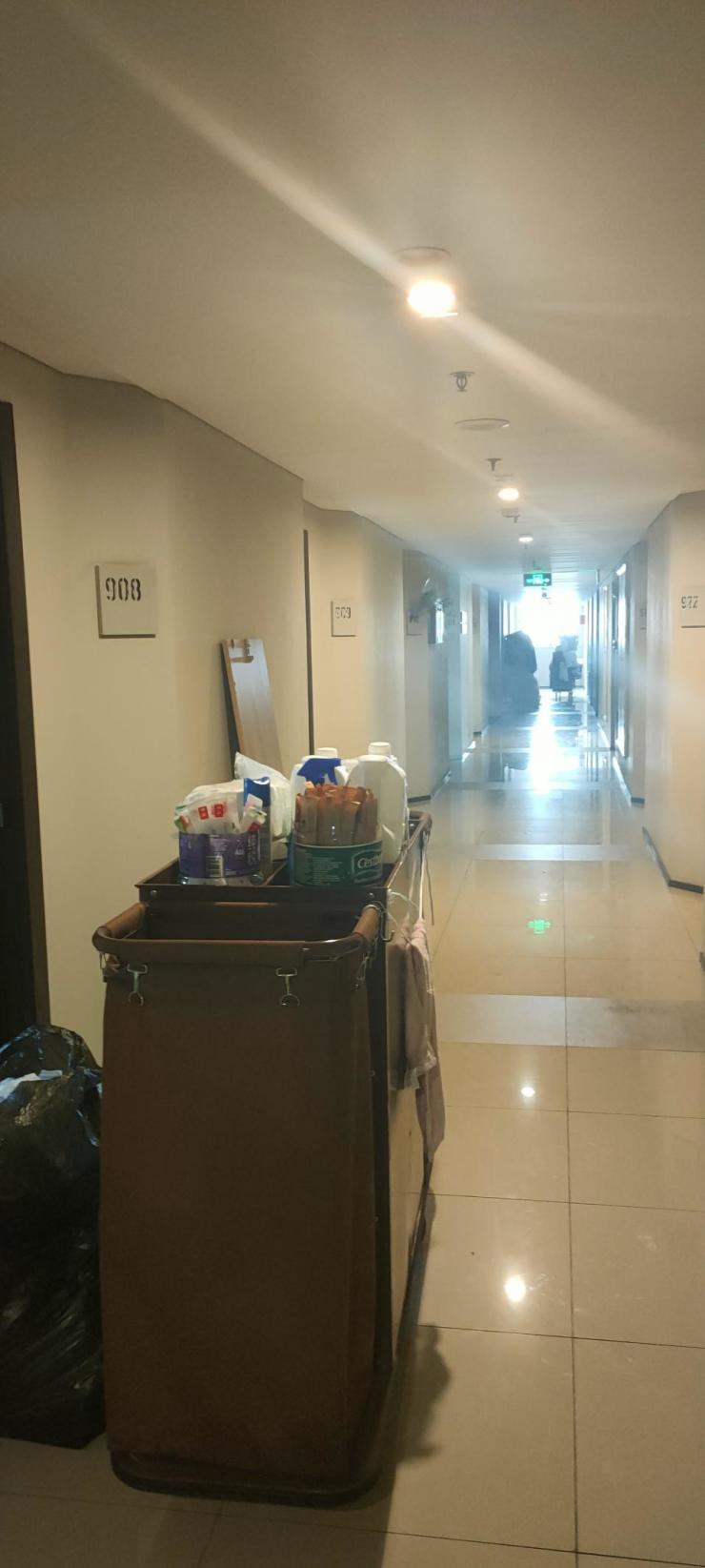 爱家公寓对面的的楼座内也有公寓对外出租,前台有工作人员帮助办理和咨询,价格也是每日变动,且不对外提供短租、长租。楼道内部管理还算整洁,不过长廊内光线偏暗。