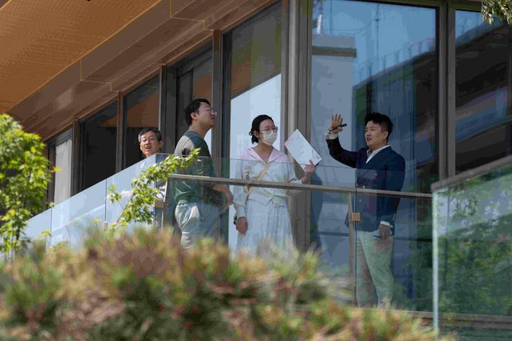 此次开放的绿城·西海云庐台地式园林,以立体式的山水美学惊艳来访者,受众纷纷为这座山水园林投来赞许和肯定。西海云庐园林景观共约6300㎡,包含前场景观面积约3500㎡以及中轴大区景观约2800㎡,以“叠山、理水、游园、抱树”的造园技法,勾勒山水画卷。原生山势与人工雕琢巧妙融合,蜿蜒水系串联林间步道,户外会客厅隐于绿荫,消融自然与社区的边界。