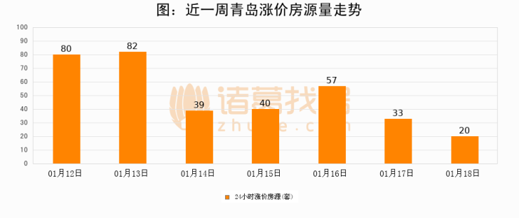 根据诸葛找房数据显示,青岛24小时涨价房源量为20套,较01月17日减少13套,环比下降39.4%。与此同时,涨价房源占比小幅回落,对于购房者来说是一个入市窗口期,购房者可抓住时机入市。