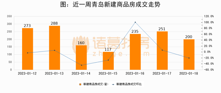 【青岛成交日报】01月18日新房成交200套、二手房69套;涨价房源20套