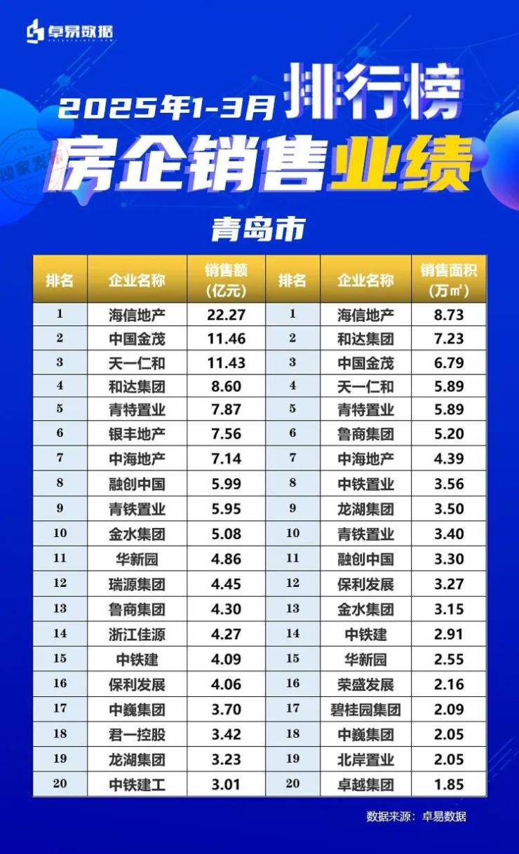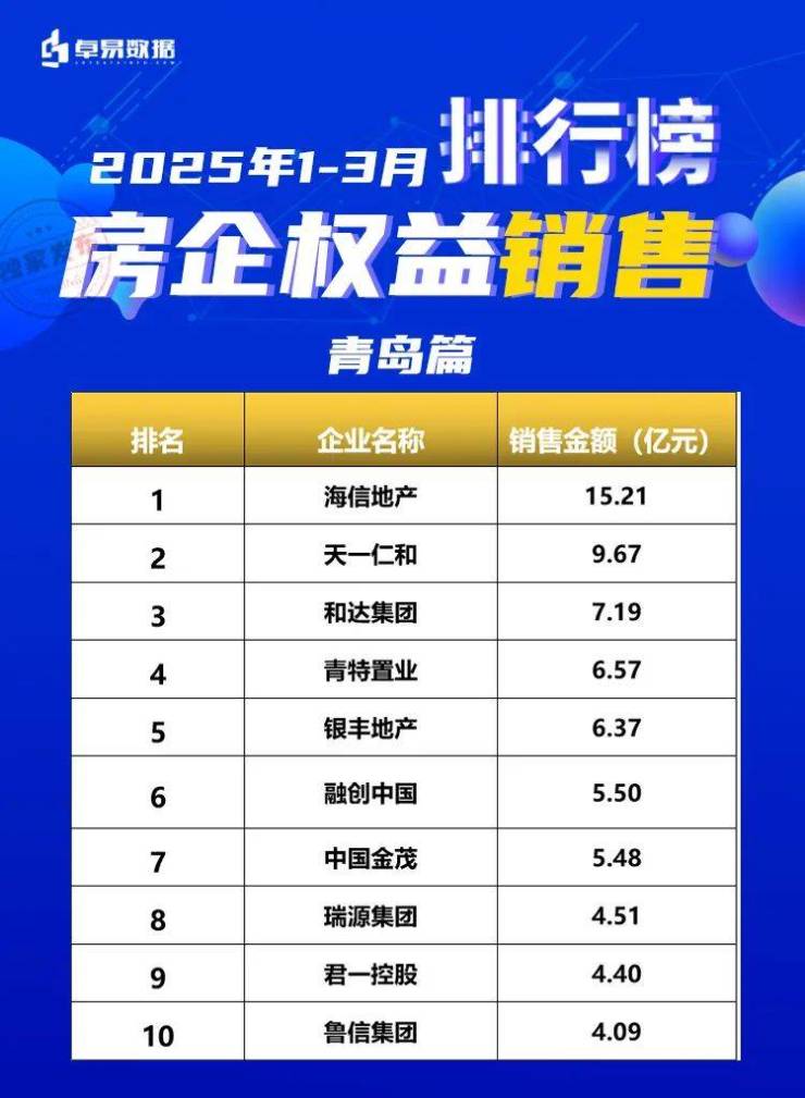 本榜单是根据卓易数据的独立研究,将青岛所有可售项目按照工商注册股权逐一进行权益拆分,剔除重复并表、重复计算的统计方法,展现一个客观的房企商品房销售权益“战绩”,更能清楚一家房企的实际业绩,更好的用于课题研究和监测。