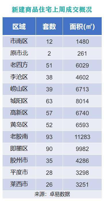 从各区成交情况来看,上周原胶南市新建商品住宅以成交面积11283㎡的成绩,位列上周各片区新建商品住宅成交面积榜首位;即墨区以成交面积9982㎡的成绩,位列成交面积榜第二位;城阳区以成交面积8014㎡的成绩,位列成交面积榜第三位。