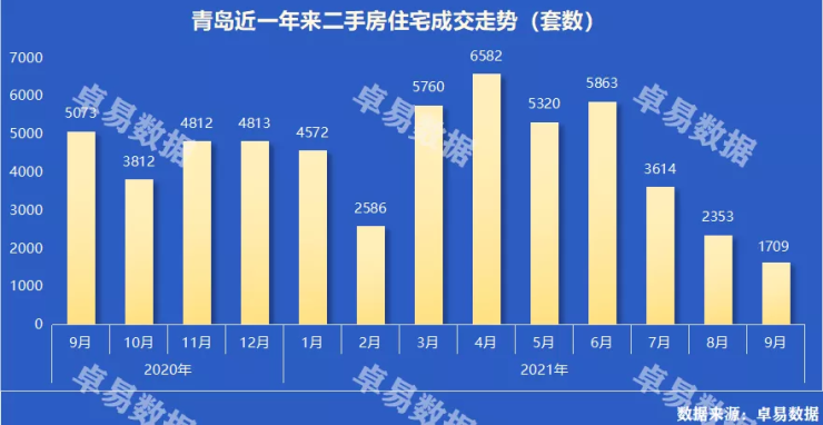 二手房市场“低迷”似乎已经成了青岛楼市的常态。尽管在今年上半年,二手房市场有过短暂的“复苏”,但进入下半年后,急剧回缩。尤其是九月份全市二手住宅成交仅1709套,环比下降约62%,同比下降超过66%。更是自2019年2月后,成交量首次跌破2000套。