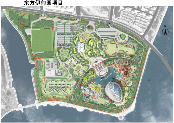 东方伊甸园由英国Grimshaw设计事务所及悉地国际设计顾问(深圳)有限公司设计联合体。根据规划,该项目将对标英国伊甸园,以“水”为主题,并融入青岛城市特色,通过对盐碱地改造及创造性的创意开发,将建设成为一座集生态环保、海洋文明、文化娱乐、科研教育等内容于一体的休闲文化旅游目的地。