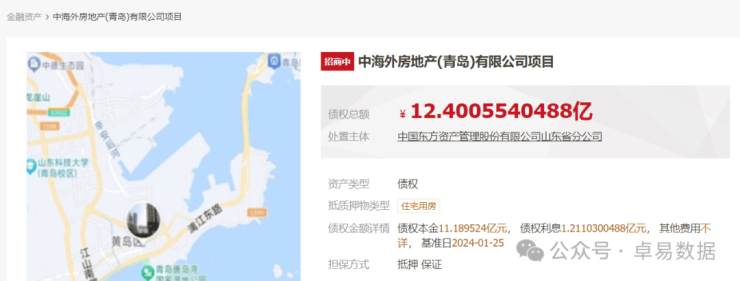 此次招商的标的为中海外房地产(青岛)有限公司的京华海悦项目,位于黄岛区长江东路北侧、薛家岛办事处东侧,长江东路455号,京华海悦小区二期已停工烂尾3年多,京华海悦二期第一次被查封与两任开发商之间的纠纷有关,而第二次则是与前开发商集力鲁威集团的民间借贷纠纷有关。虽然与集力鲁威集团的纠纷已经解决,但又出现了一个新的债,又停滞了。