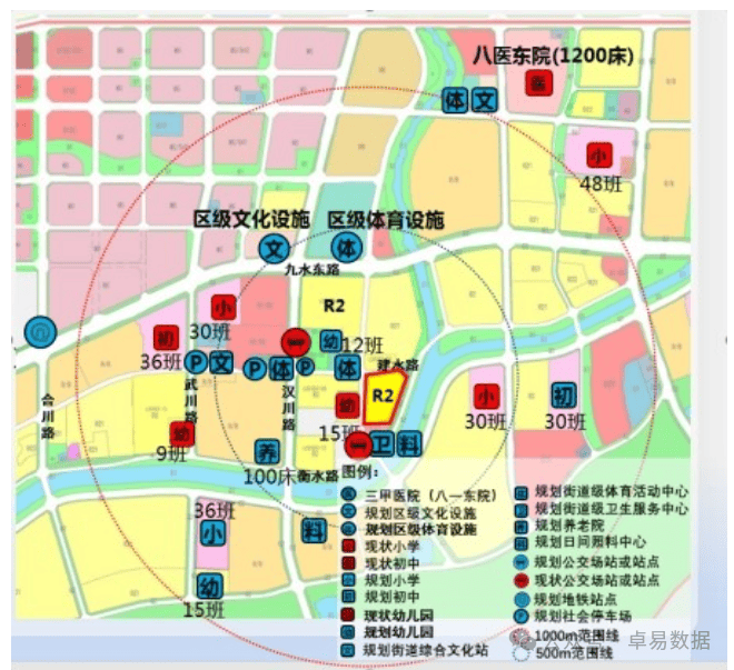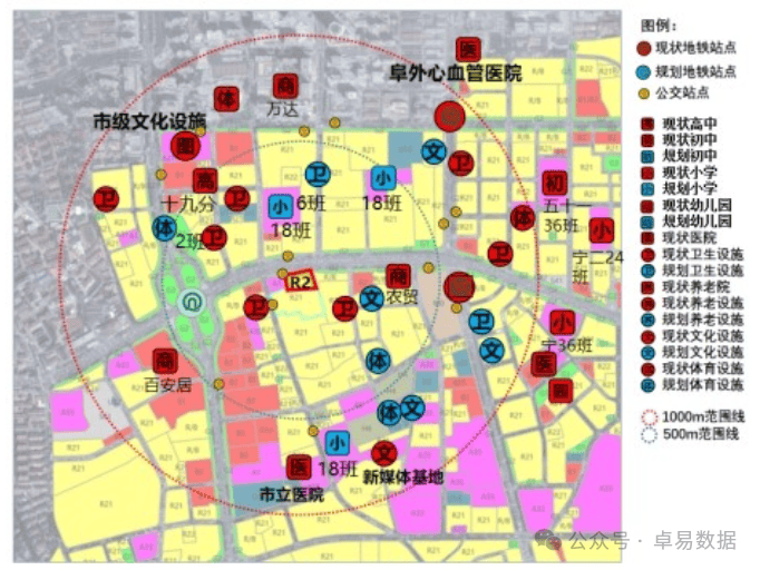 2. 教育与医疗:现状周边宁夏路小学、宁夏路第二小学、五十一中、十九中分校等,规划有3所18班小学(500米左右);现状周边有市立医院(徐州路院区)、阜外心血管医院、龙田金秋妇产医院。