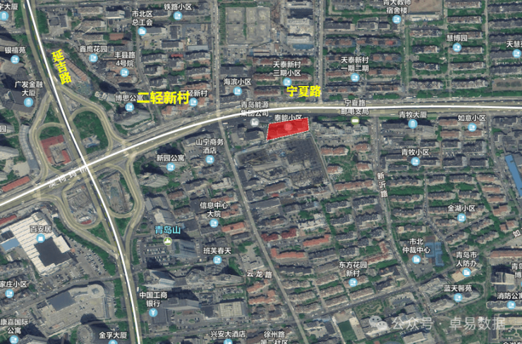 位于市南区宁夏路125号,规模小高容积,占地面积2135㎡,容积率7.3,建筑面积约15585.5㎡(安置建面>9040㎡),楼面起始价14300元/㎡,楼面起始价2.23亿,保证金4457万。