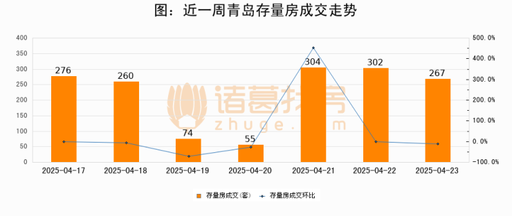 【青岛成交日报】04月23日新房成交232套、二手房267套;
