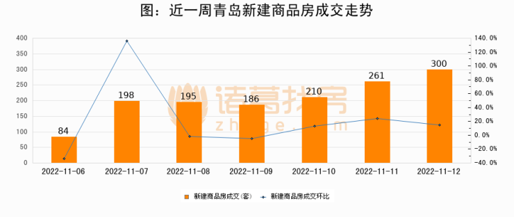 【青岛成交日报】11月12日新房成交300套、二手房11套;涨价房源92套
