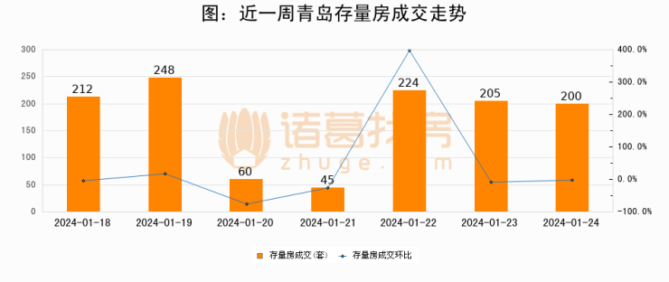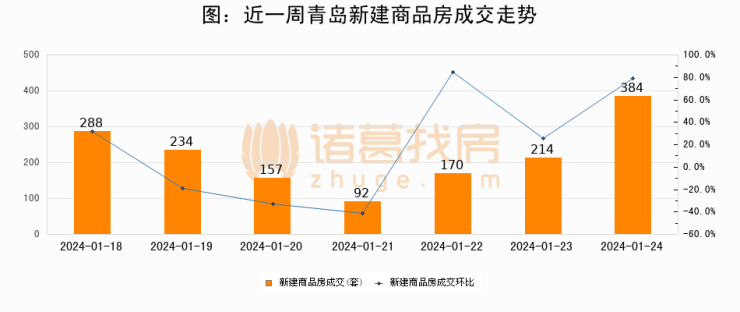 【青岛成交日报】01月24日新房成交384套、二手房200套;涨价房源26套