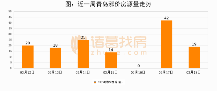 根据诸葛找房数据显示,青岛24小时涨价房源量为19套,较03月17日减少23套,环比下降54.8%。与此同时,涨价房源占比小幅回落,对于购房者来说是一个入市窗口期,购房者可抓住时机入市。