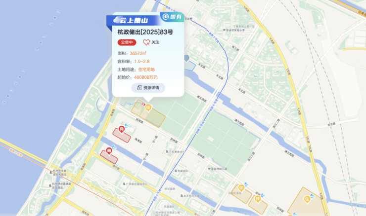 杭政储出[2025]82号即萧山区蜀山单元(蜀山南片区)XS150201-42地块,东至金西路,南至南六路,西至规划绿地,北至规划绿地。地块出让面积31348平方米,出让建筑面积37617.6平方米,出让起始价65831万元,折合起始楼面价1.75万元/平方米。