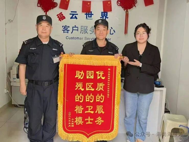 5 月 21 日,济南云世界业主向物业赠送一面锦旗,称赞保安于景卫是 "园区的卫士,助残的楷模"。在日常服务中,于景卫经常为小区业主提供暖心的关怀,主动帮拿重物、推轮椅送业主回家。