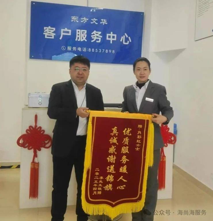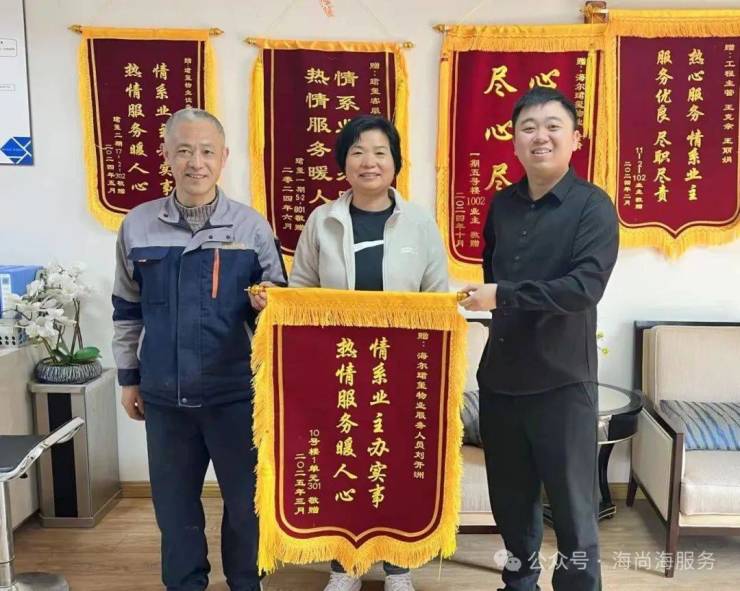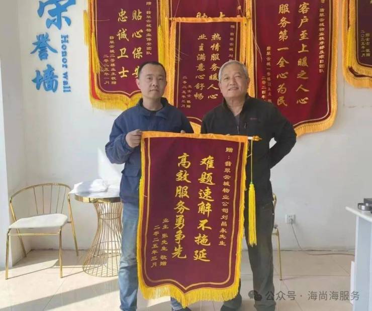 近日,翡翠云城一位业主向物业服务中心赠予锦旗,特别表彰工程管家刘昌永以专业高效的服务响应机制,第一时间解决业主家中水电系统突发疑难,其精益求精的工匠精神与"想业主所想"的服务意识,生动诠释了海尚海服务"以用户满意为中心"的核心价值观。