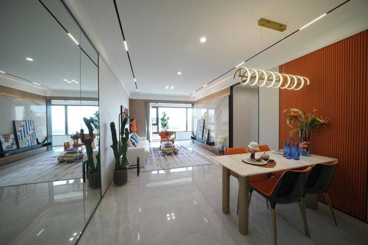 基于动线考量,致力打造自由格局。餐客厅一体化大通厅,合理动线延展居家视野,无论是待客排场还是生活剧场,这里的精彩每日上演。