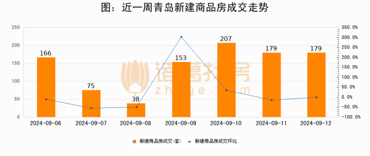 【青岛成交日报】09月12日新房成交179套、二手房203套;涨价房源27套