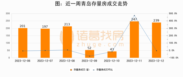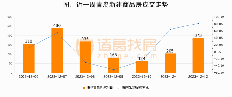 【青岛成交日报】12月12日新房成交373套、二手房239套;涨价房源17套