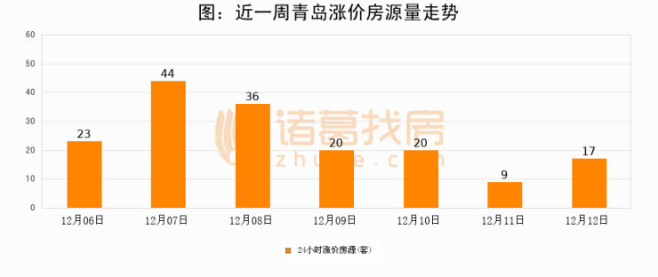 根据诸葛找房数据显示,青岛24小时涨价房源量为17套,较12月11日增加8套,环比上涨88.9%。与此同时,涨价房源占比小幅扩大,业主信心有所提升。