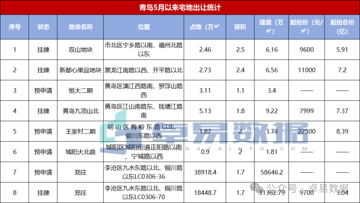 5月下旬以来,青岛土地供应进入井喷期,迎来土地供应潮,此次郑庄地块上市起拍价格相比去年预估的地价下调。