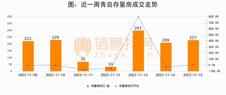 【青岛成交日报】11月15日新房成交216套、二手房227套;涨价房源53套