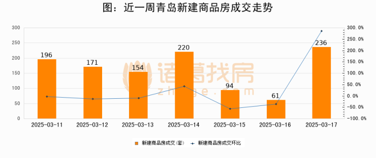 【青岛成交日报】03月17日新房成交236套、二手房310套;涨价房源42套