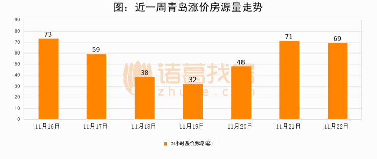 根据诸葛找房数据显示,青岛24小时涨价房源量为69套,较11月21日减少2套,环比下降2.8%。与此同时,涨价房源占比小幅回落,对于购房者来说是一个入市窗口期,购房者可抓住时机入市。