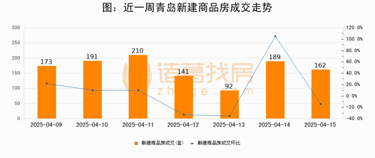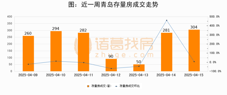 【青岛成交日报】04月15日新房成交162套、二手房304套;