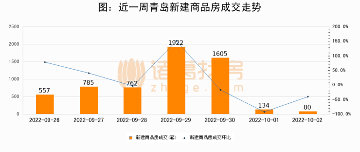 【青岛成交日报】10月02日新房成交80套;涨价房源65套