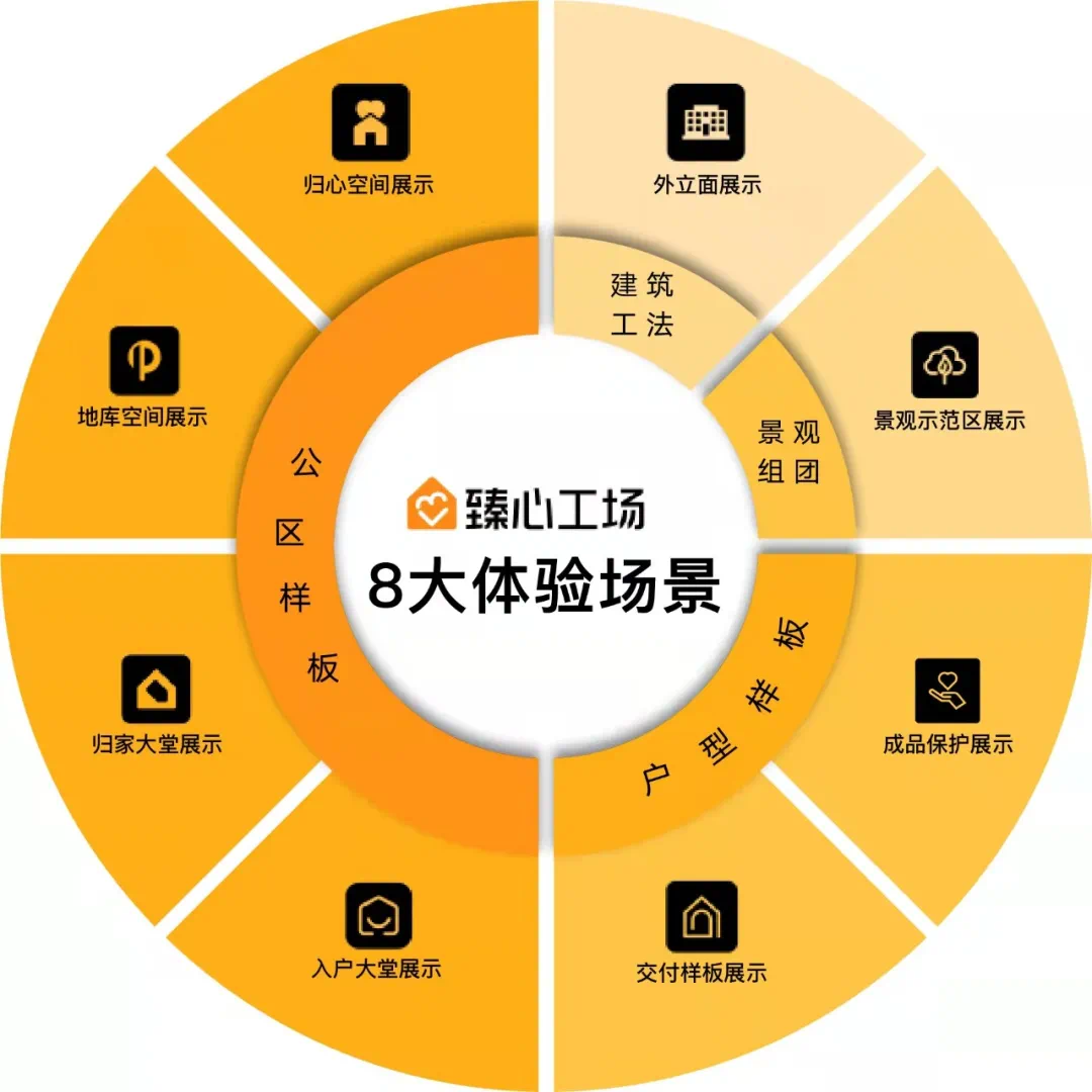 【臻心工场】作为应对新时代客群需求的交付体系,以营造6大臻心法则、8大体验场景让美好生活体系落地过程可视化、可触摸。在场景体验中还原真实品质,在品质共鉴中选择生活。