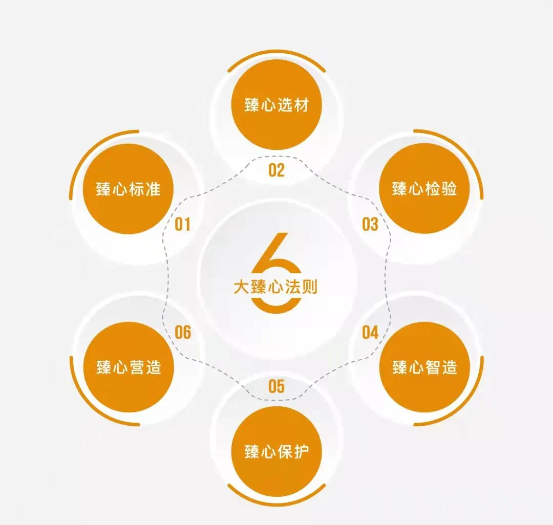 从方寸之间的图纸到近可触摸的建筑,通过“臻心标准 | 臻心选材 | 臻心检验 | 臻心智造 | 臻心保护 | 臻心营造”六大臻心法则层层打磨,严苛匠筑质量,为美好生活匠造坚实保障。融创始终相信,只有优秀的产品扎实落地,辅以人性化的细节服务,才经得起行业和业主的双向检验。