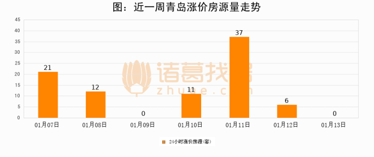 根据诸葛找房数据显示,青岛24小时涨价房源量为0套,较01月12日减少6套,环比下降100%。与此同时,涨价房源占比小幅回落,对于购房者来说是一个入市窗口期,购房者可抓住时机入市。