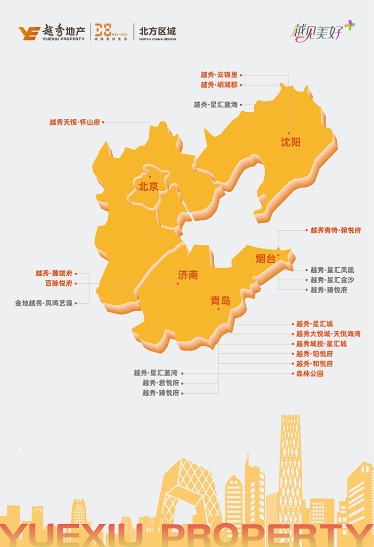 2012年越秀地产首入“东方瑞士”——青岛,以主城为据点分散布局青岛环胶州湾各区市,先后开发了「星汇蓝湾」「天悦海湾」「星汇城」「臻悦府」「君悦府」「铂悦府」「和悦府」等项目,紧随城市发展,打造标杆项目,为岛城美好增色,构筑美好生活典范样本。