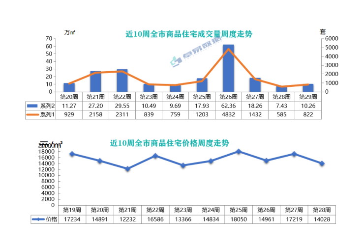 根据卓易数据统计,上周(7.14-7.20)青岛新建商品住宅成交822套,环比上涨40.51%;成交面积为10.26万㎡,环比上涨3.09。