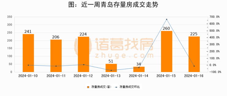 【青岛成交日报】01月16日新房成交245套、二手房225套;涨价房源23套