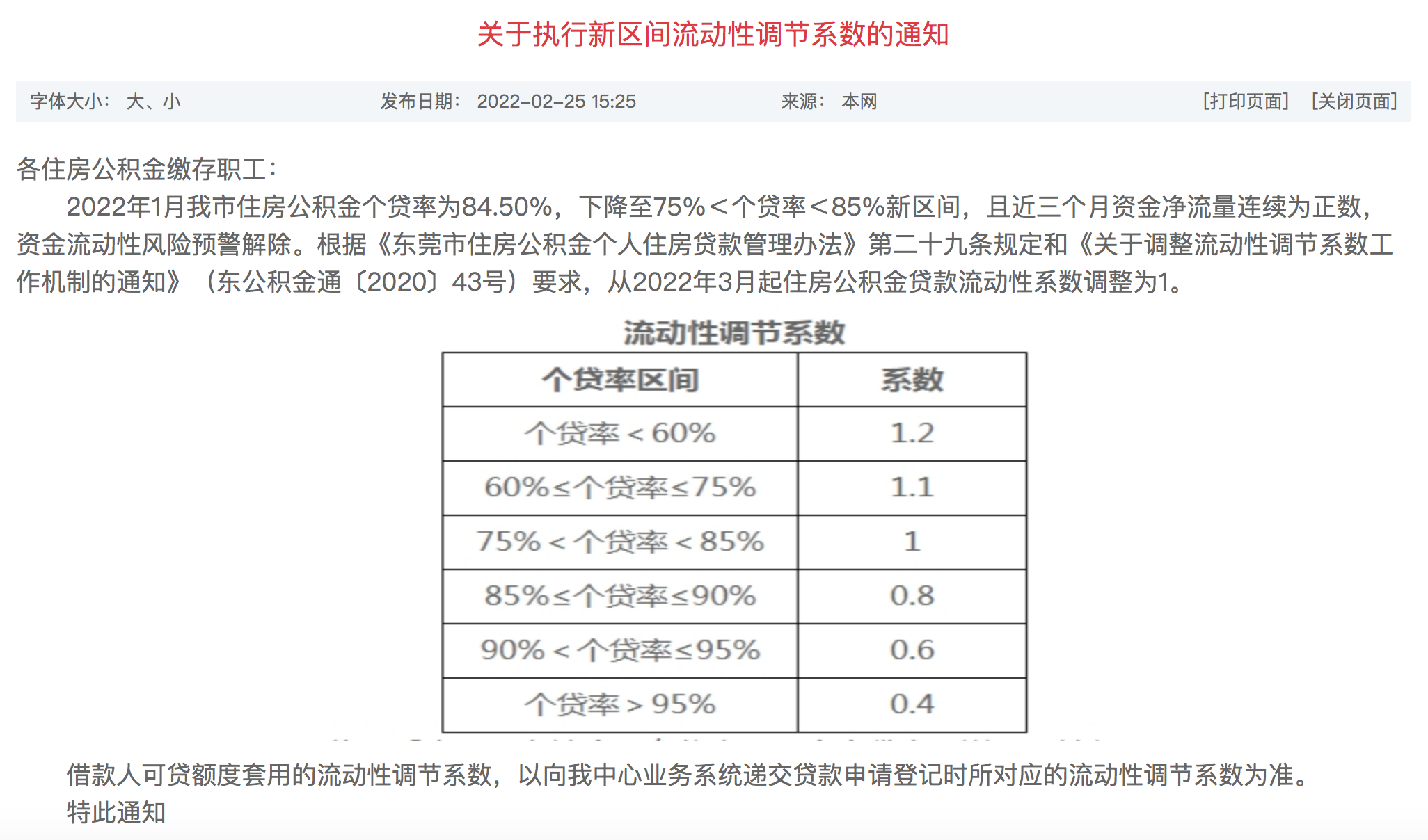 2月25日,广东省东莞市住房公积金管理中心发布《关于执行新区间流动性调节系数的通知》(简称《通知》)。