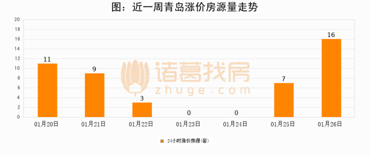 根据诸葛找房数据显示,青岛24小时涨价房源量为16套,较01月25日增加9套,环比上涨128.6%。与此同时,涨价房源占比小幅扩大,业主信心有所提升。