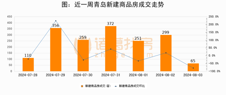 【青岛成交日报】08月03日新房成交65套、二手房55套;涨价房源20套