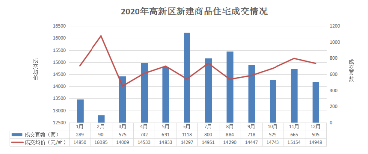 就成交均价来看,高新区2020年新建商品住宅成交均价为14629元/㎡,相较于2019年成交均价数据同比上涨了784元/㎡,虽然涨幅只有5.66%,但在2020年楼市整体“水逆”的状态下,高新区新房均价不降反涨,也确有资本、让人眼前一亮。