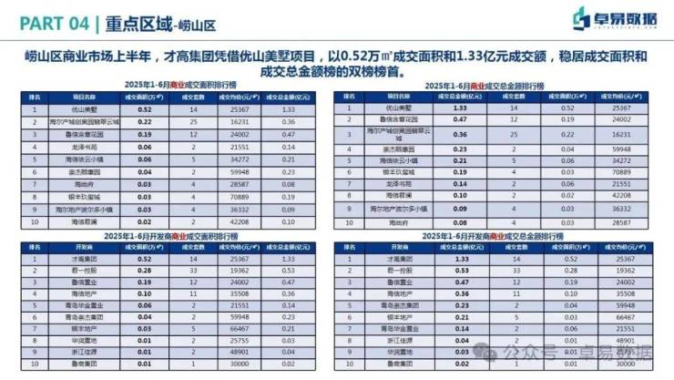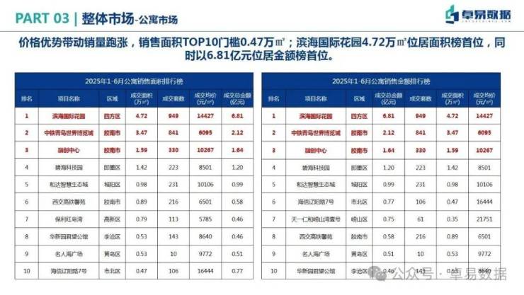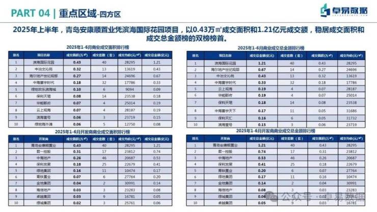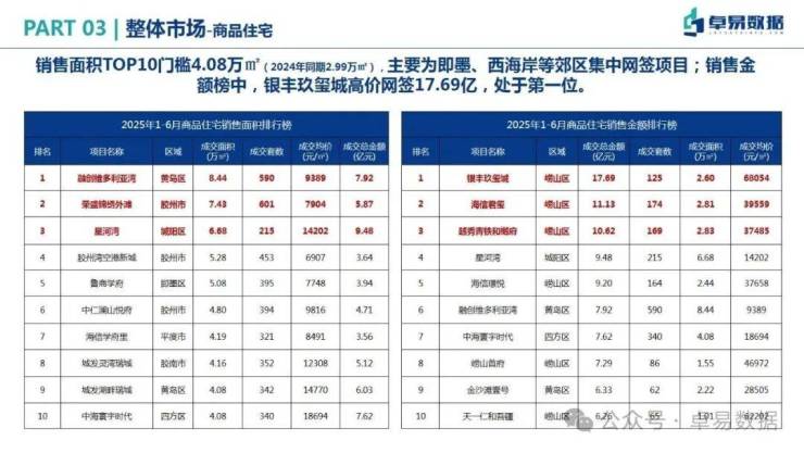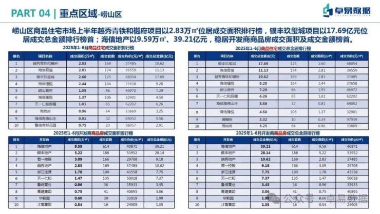 2025年青岛楼市上半年三、四月份进入活跃期,在五六月份热点板块、热点项目出现翘尾,由于6月的“努力”,整体成交量相比去年是增长的,实际层面二手房比新房活跃。