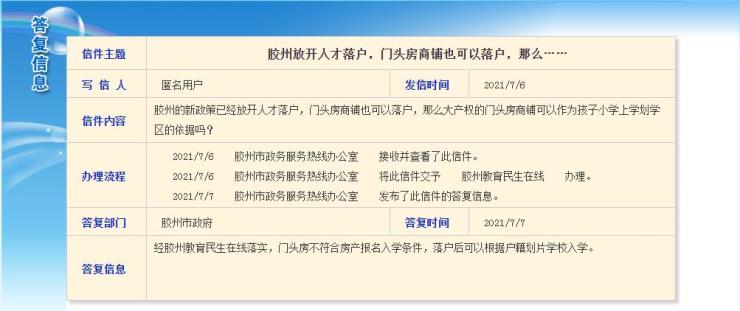 6月份,青岛的胶州、平度、莱西三地放开了落户政策,其中提出“非居住性质的合法产权型房屋”可以落户。这也就是说,如商业网点、公寓等商业性质的房屋,也自此有了落户的渠道。